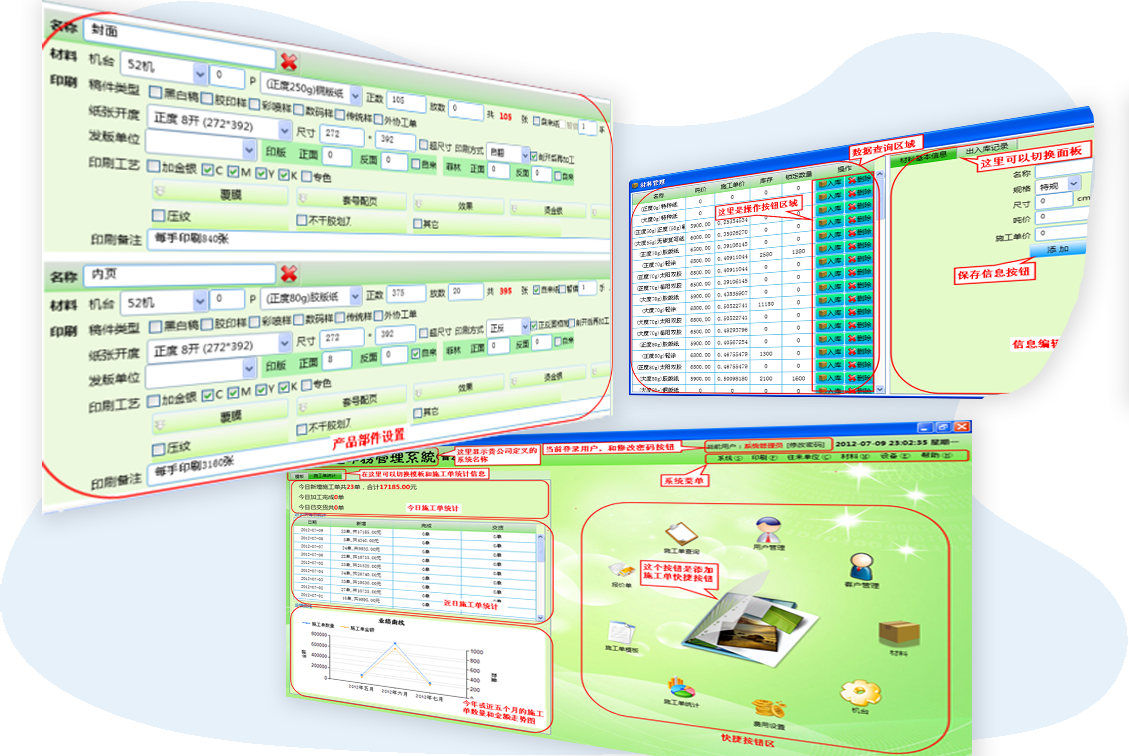 - 可實現(xiàn)印刷流程無紙化管理,包括財務、機臺、銷售多端功能,數(shù)據(jù)自動流轉。